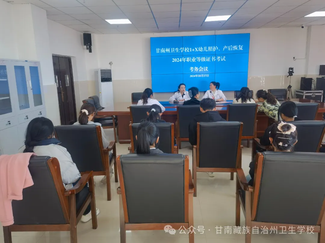 考前,为确保考评工作顺利开展,学校组织获取考评员资格的专业教师团队,科学制订培训计划,利用课余时间对学生进行了为期50天的理论及实操培训指导。并组织召开了1+X幼儿照护证书(中级)考务工作会议,明确考务工作人员及志愿者的具体任务,完成考场布置,确保机考设备调试到位,实操物料准备齐全,实操考场安排有序,为考试顺利开展打下了良好基础。