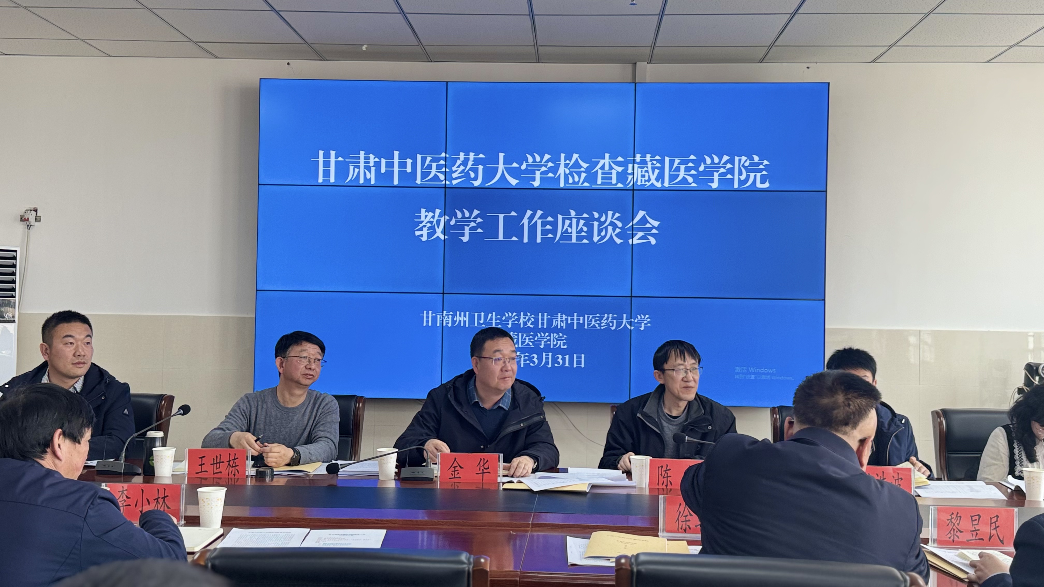 2025年3月31日上午,甘肃中医药大学党委常委、副校长金华,教务处处长陈彻、招生就业处处长王世栋等一行七人莅临藏医学院,通过实地调研与座谈交流,就教学工作开展情况及本科教育教学评估进行全面检查指导。学院领导班子及全体师生高度重视此次检查,全面展示教育教学成果,认真听取指导意见,谋划学院高质量发展。州卫生健康委党组书记、主任马彪顺,党组成员、副主任徐朝阳、贾占峻,藏医学院院长黎昱民、副院长李小林、赵小平、李滔陪同检查。