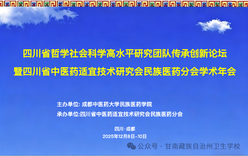 12月9日,四川省哲学社会科学高水平研究团队民族医药传承创新论坛暨四川省中医药适宜技术研究会民族医药分会2025年学术年会在成都顺利召开。本次会议由成都中医药大学主办,汇聚四川、青海、西藏、新疆等省内外民族医药领域的专家学者、行业骨干,旨在搭建民族医药传承创新与学术交流的高端平台。我院罗藏东珠教授、加羊加措博士受主办方邀请,代表甘肃中医药大学藏医学院出席本次会议。