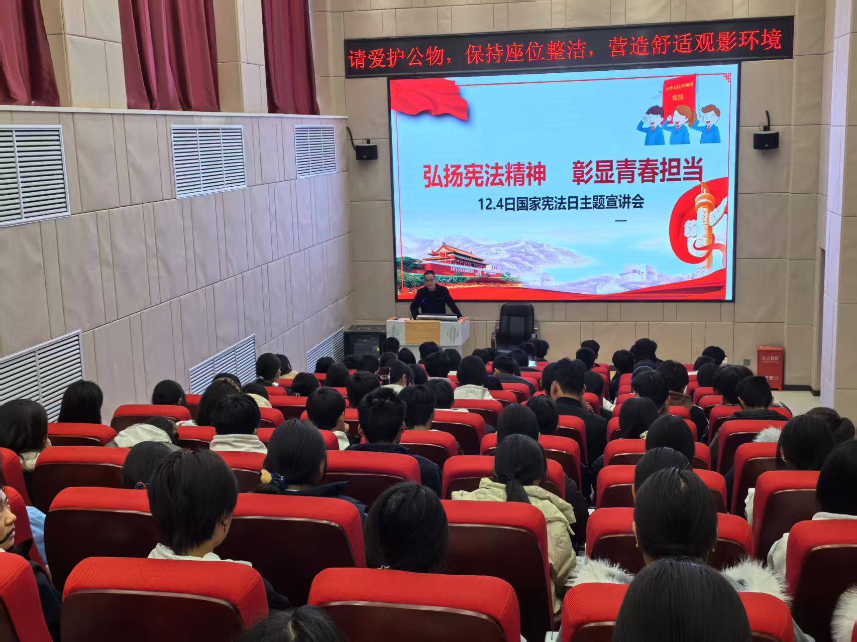 3.举办专题法治讲座。11月26日,邀请甘南州人民检察院“岗拉梅朵”宣讲团杨艳琴同志到学校开展“与宪同行,护航青春”讲座,280余名师生参加,讲座围绕法律常识、身边案例及自我保护等内容进行讲解。12月5日学校思政名师工作室、思政教研室主任杨宏同志结合学生特点,开展“弘扬宪法精神、彰显青春担当”讲座,130余名同学参加,讲座引导学生树立法治观念,筑牢守法意识。