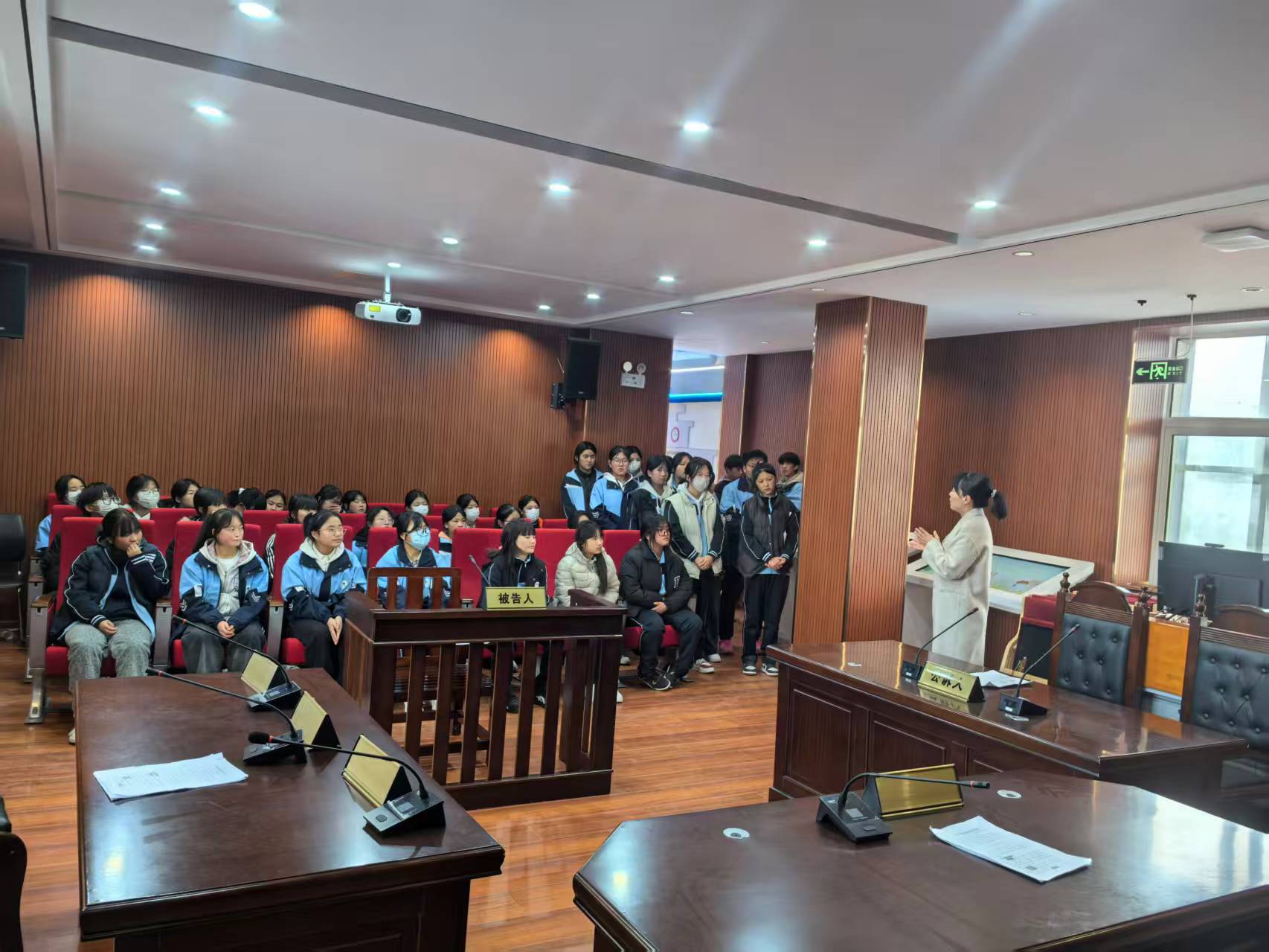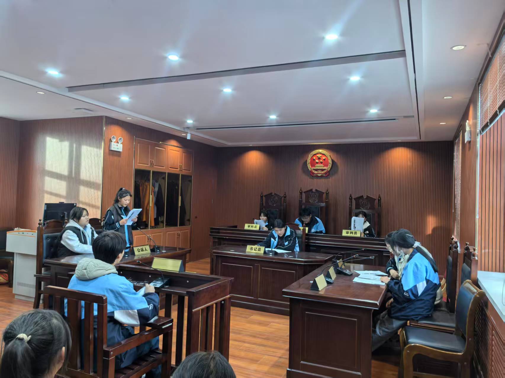 4.组织法治实践体验。12月8日,组织80余名学生代表到甘南州青少年法治宣传教育基地开展实践活动,学生通过模拟法庭、法律知识讲解、神舟“岗拉梅朵”号飞船体验等形式,“零距离”感受司法公正。在基地讲解员引导下,学习宪法与未成年人保护法、预防未成年人犯罪法相关法律条款,进一步提升学生法律认知与实际运用能力。