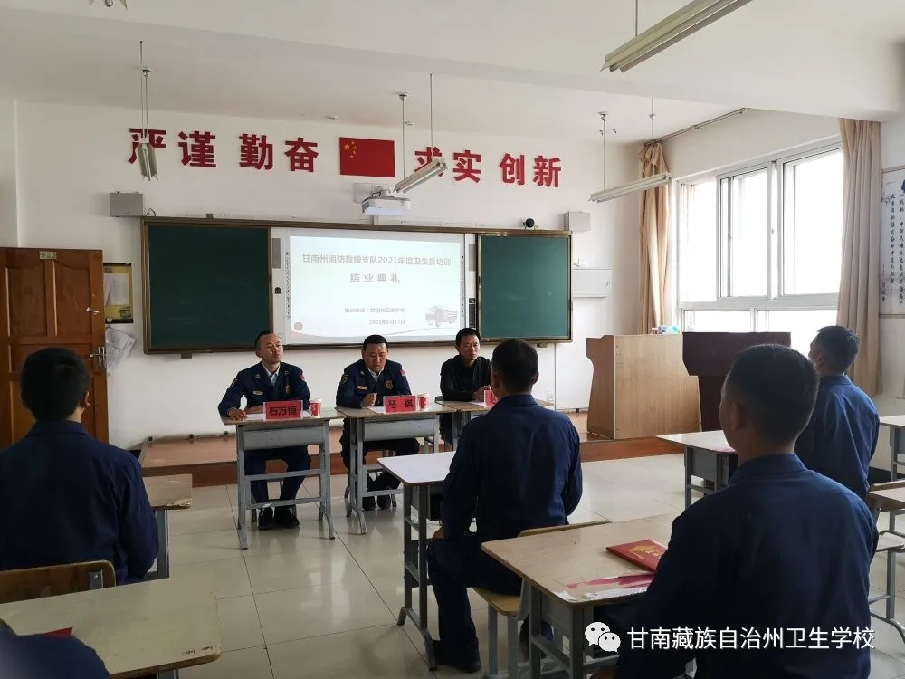 本次培训班是根据《2021年甘南州基层消防救援队伍卫生员培训实施方案》等相关文件的要求举办的,培训目的在于进一步强化基层支队卫生员理论水平和实际操作技能,全面提高甘南州消防救援支队卫生员的急救服务能力。甘南州卫生学校独立承担了本次培训的教学、实践、食宿等任务,圆满完成了各项教学工作,进一步提升了我校在医学教育领域的社会认可度。