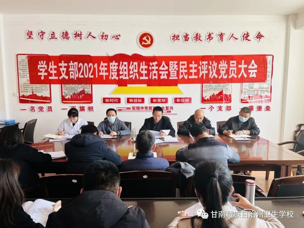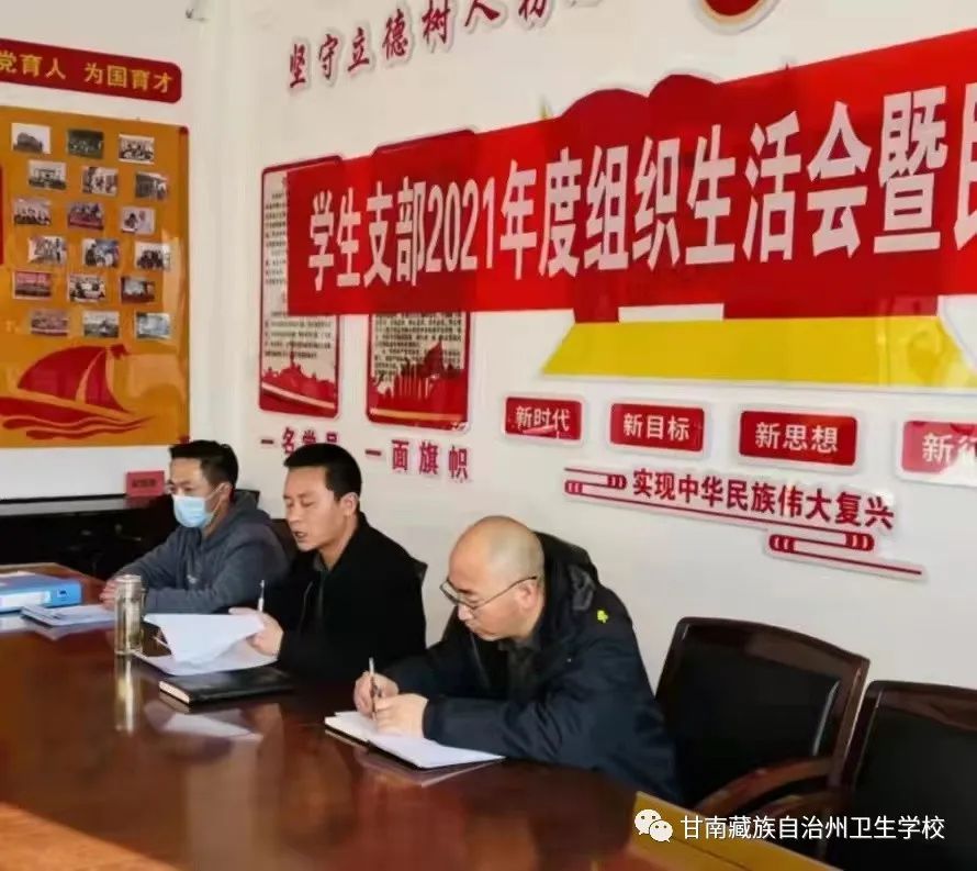 3月10日下午, 中共甘南州卫生学校总支委员会学生党支部在教学楼三楼党建活动室召开2021年度组织生活会暨民主评议党员会议。会议邀请了党总支书记赵兵同志列席指导会议,学生支部书记赵小平同志主持会议。