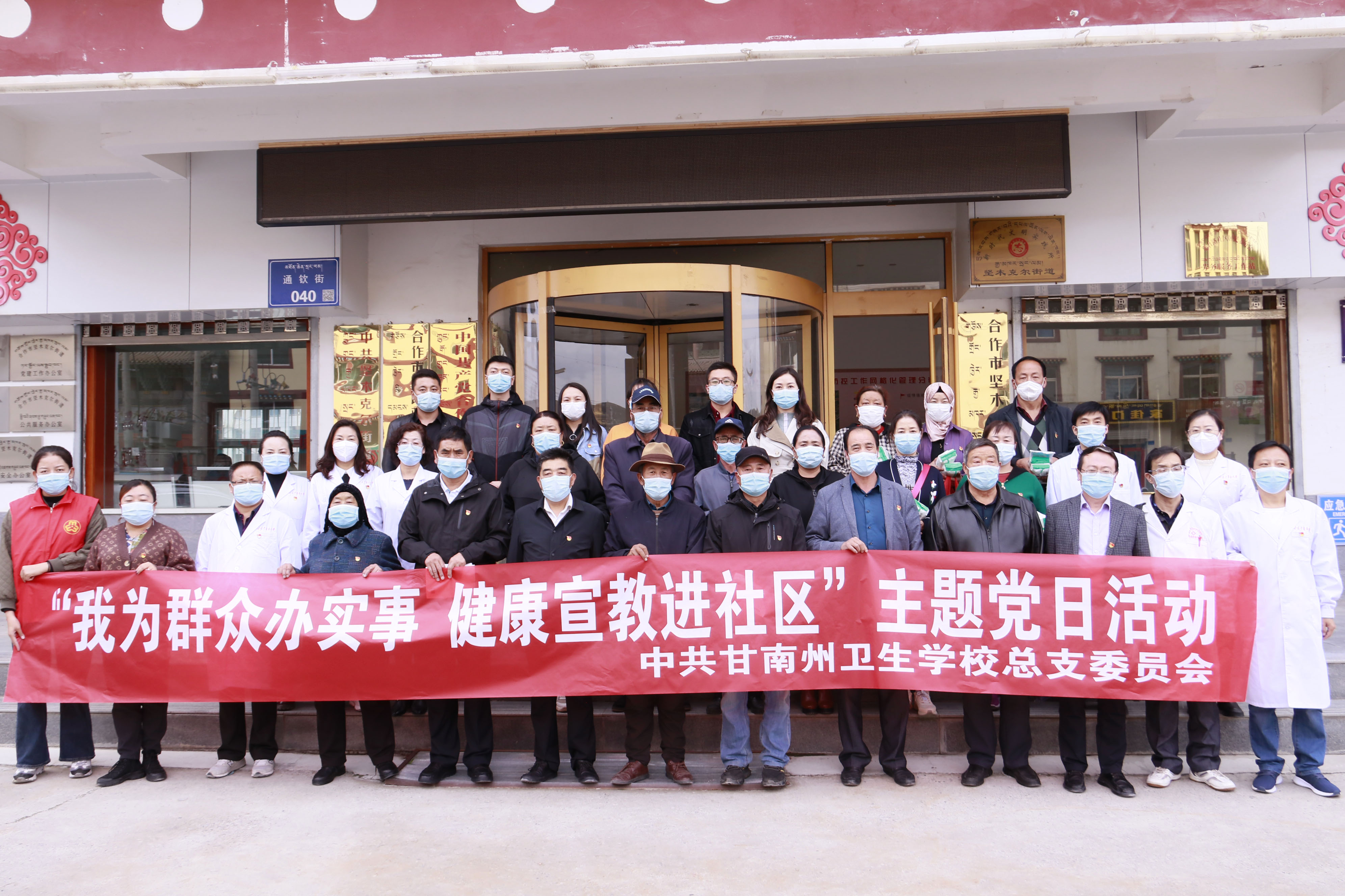 党日活动中,州卫校党总支书记赵兵向大家介绍了我校的基本情况。目前学校整体办学已形成以藏医学本科教育为特色,普通中等医学教育为基础,成人高等教育为补充,中专、大专、本科并举,藏医药、西医药并重,普教、成教、培训协同发展的多元化格局。累计培养了7000余名中专层次医疗卫生人才和1000余名藏医药高等专业技术人才,扎根在甘南州、天祝县及青海、四川等地的医疗、科研、教学、预防、保健等行业领域,许多人已成为本行业领域中的骨干力量。“五年一贯制”的合作办学更是为中专学生学历层次创造了更高的提升机会。这次和州委直属机关工委联合开展9月主题党日活动,是健康宣教工作深入基层的创新形式,意义非同,既发挥了我校教师专业优势及资源,为社区提供健康讲座、健康义诊等服务,提升社区居民的获得感、幸福感和安全感,又推进了校地融合共建,强化党员干部“我为群众办实事”的为民情怀,共同营造社会和谐稳定、人民安居乐业的良好局面。