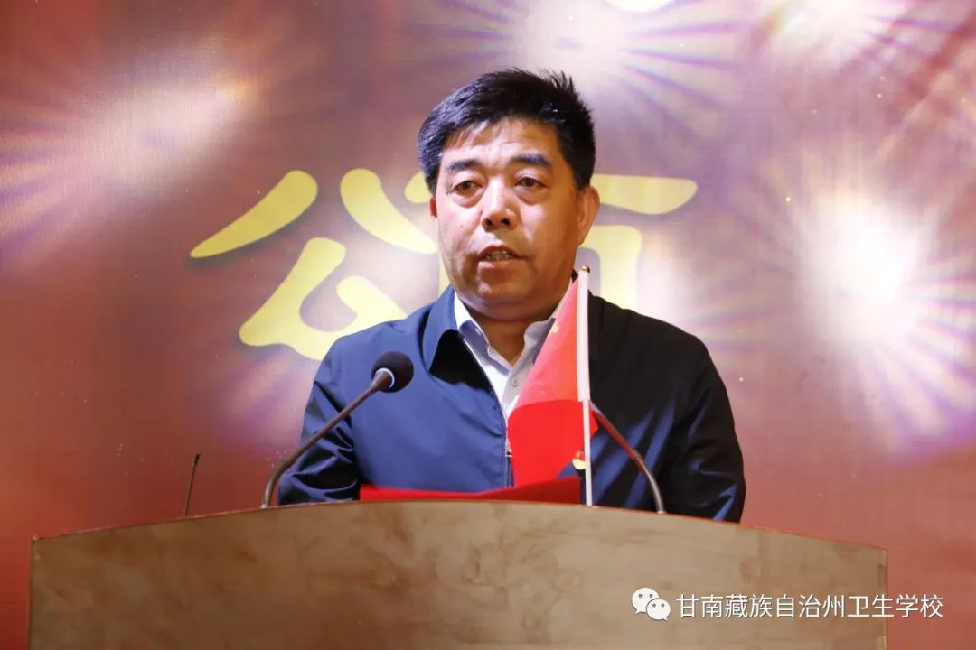 甘南卫校党总支书记、甘肃中医药大学藏医学院直属党支部书记赵兵出席会议并致辞