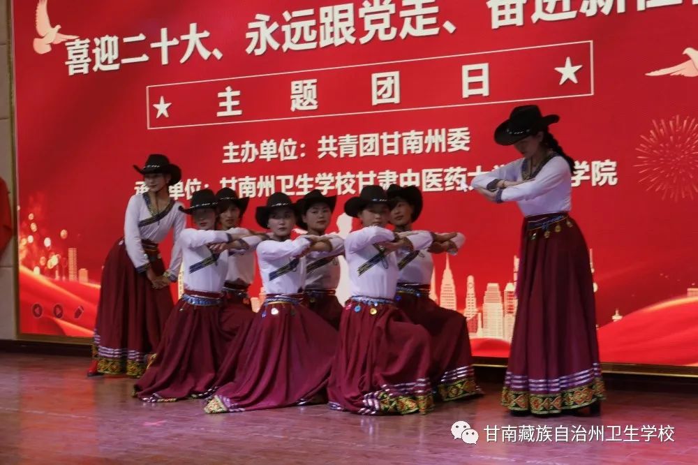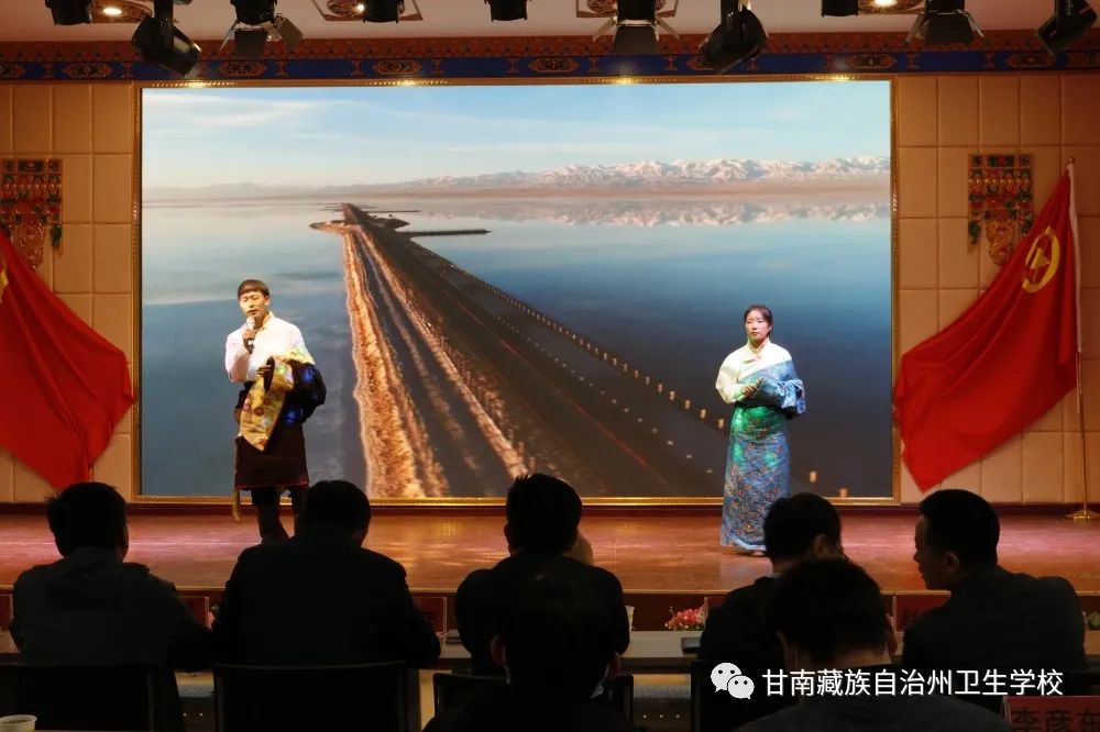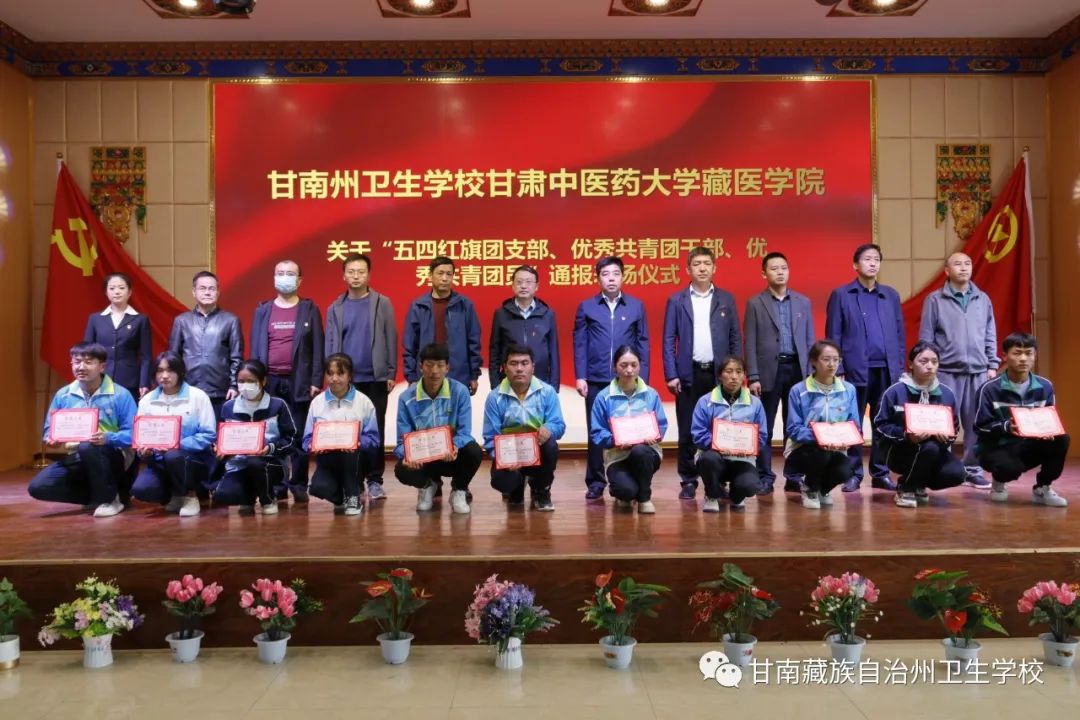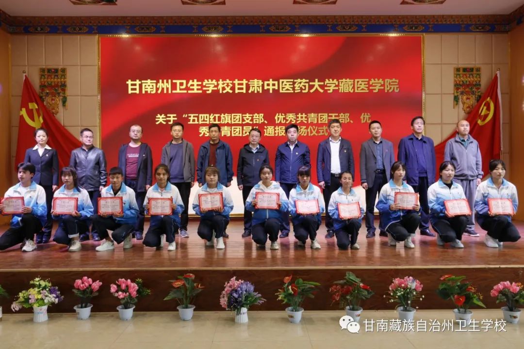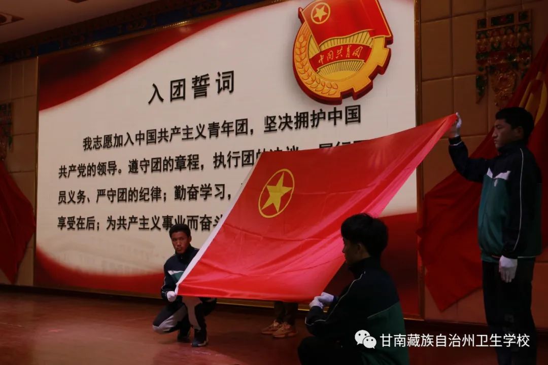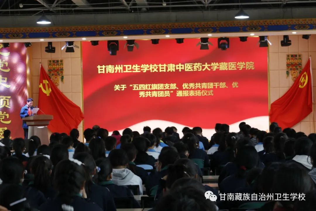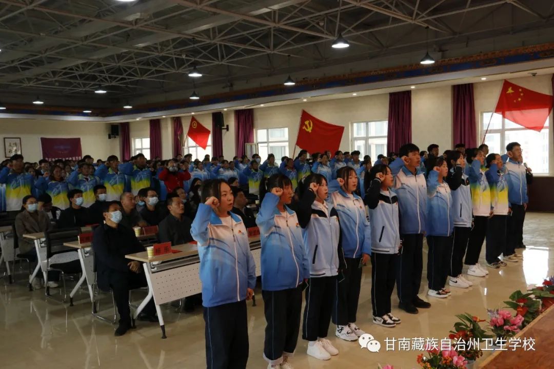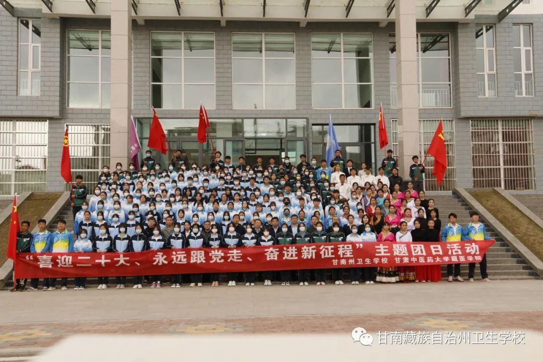 为了继承和发扬五四精神,庆祝中国共产主义青年团成立100周年,激发大中专学生的爱国情强国志报国行,激励和引领广大团员青年时刻牢记总书记嘱托,坚定理想信念,站稳人民立场,练就过硬本领,投身强国伟业,自觉在党和人民最需要的地方绽放青春,为实现中华民族伟大复兴中国梦贡献青春力量,4月25日下午,由共青团甘南州委举办,甘南州卫生学校、甘肃中医药大学藏医学院承办的“喜迎二十大、永远跟党走、奋进新征程”主题团日活动在我校隆重举行。共青团甘南州委副书记何学忠同志出席会议并讲话,甘南卫校党总支书记、甘肃中医药大学藏医学院直属党支部书记赵兵出席会议并致辞,校(院)领导班子成员、各科室负责人、部分老师、优秀团干部、优秀团员及新团员300余人参加了本次活动。