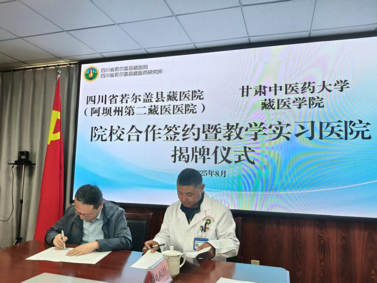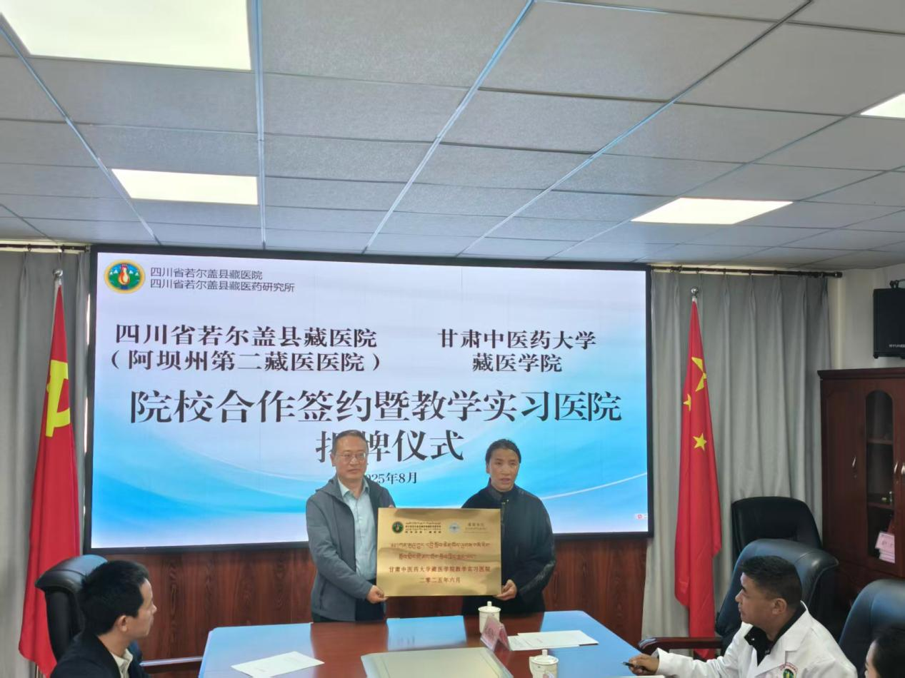 甘肃中医药大学藏医学院与四川省若尔盖县 藏医院举行院校合作暨教学实习医院签约揭牌仪式