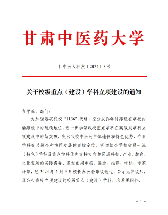 近日,甘肃中医药大学公布了校级重点(建设)学科立项建设名单,我院护理学(藏医)获批校级重点学科立项,标志着我院在学科建设上迈出了新的坚实步伐,为我院专业学科交叉融合、和谐发展提供了坚实支撑,推动了我院学科建设的高质量发展。