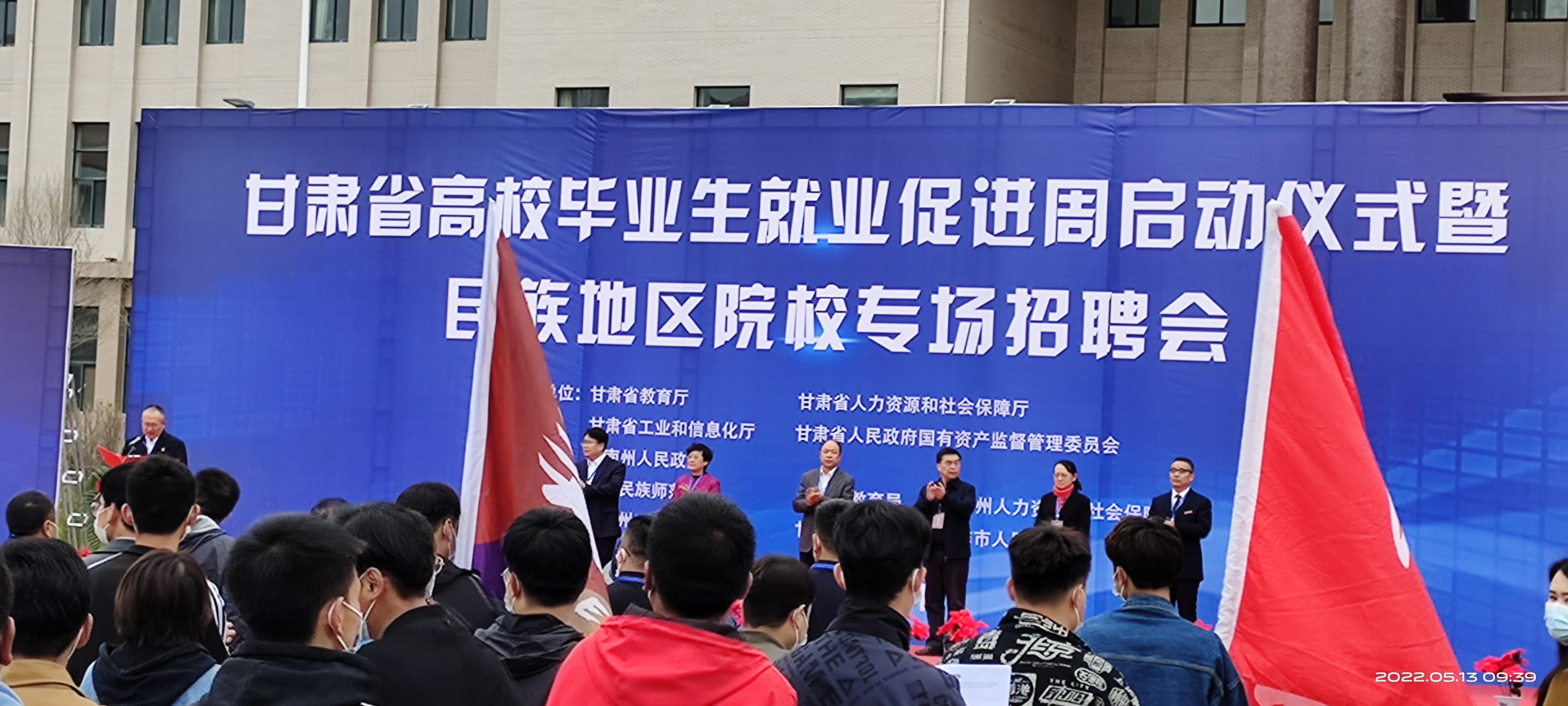 为进一步贯彻党中央、国务院关于做好高校毕业生就业工作的指示精神和决策部署,落实省委省政府指示批示要求,促进民族地区毕业生、少数民族毕业生、民族院校毕业生充分就业,省教育厅、省人社厅、省工信厅、省政府国资委、甘南州人民政府于2022年5月13日在甘肃民族师范学院举办了甘肃省高校毕业生就业促进周启动仪式暨民族地区院校专场招聘会(线上线下结合)。