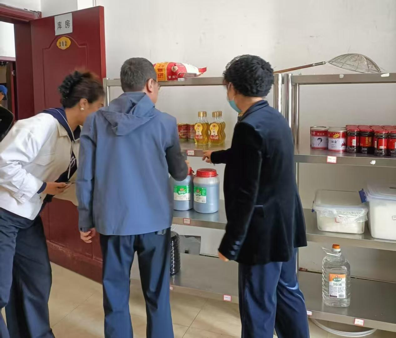 2025年8月30日校(院)领导带领总务科成员进行隐患排查专项整治工作,对食堂灶具天然气设备、冷藏设备,原材料库房进行了全面督察,规范储存分区管理,并要求全员业务培训确保持证上岗;校内商超严格核查食品保质期与进货台账,要求奶茶店落实“明厨亮灶”标准;为确保安全和便捷,洗浴中心更换淋浴喷头15处,加装防滑垫20余块,并建立每日消杀制度。