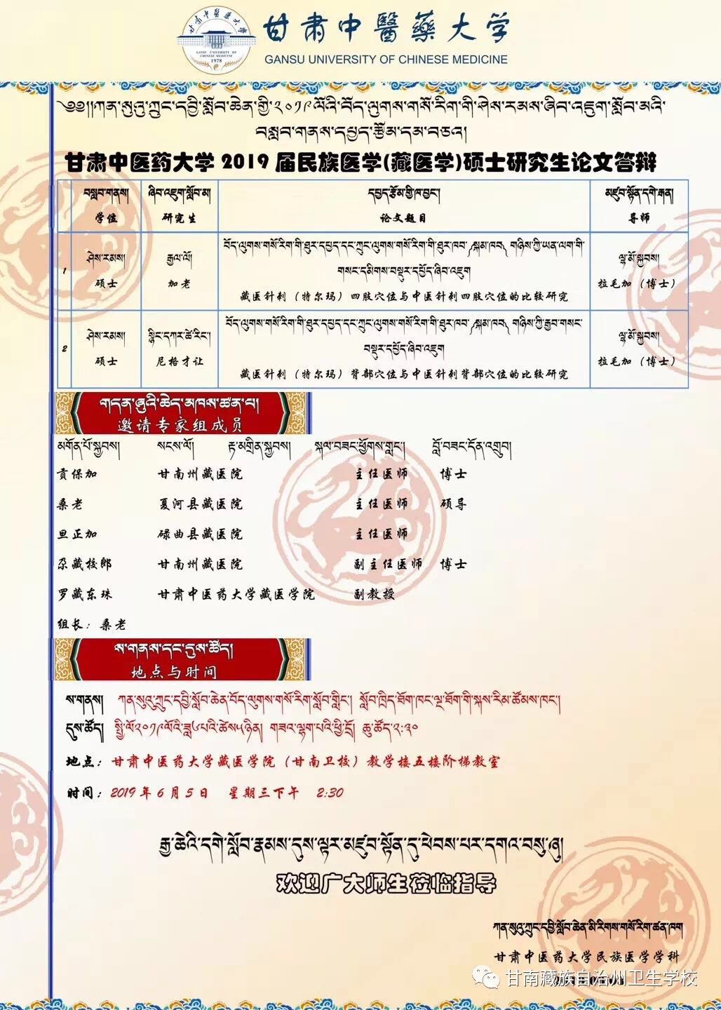 甘肃中医药大学藏医学院硕士研究生论文答辩工作顺利完成