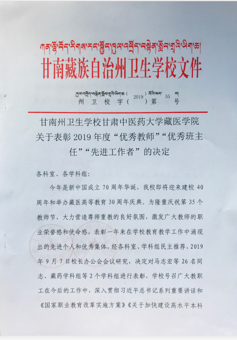 甘南州卫生学校、甘肃中医药大学藏医学院庆祝2019年教师节暨表彰大会