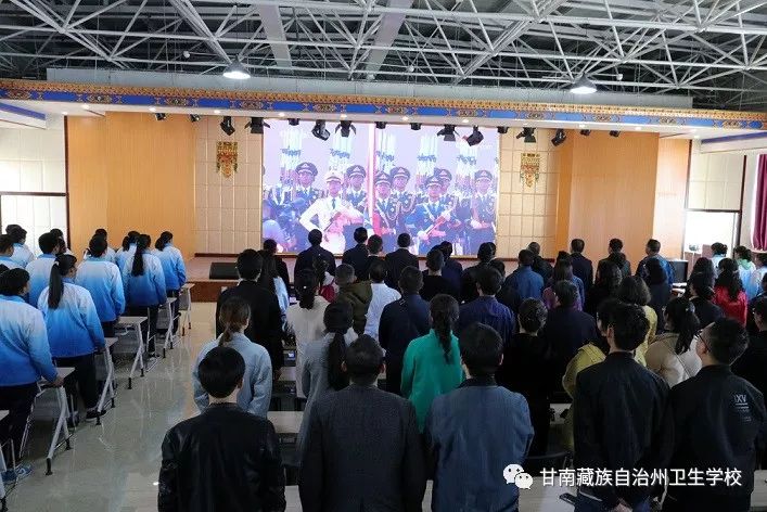甘南州卫生学校、甘肃中医药大学藏医学院全体师生观看庆祝中华人民共和国成立70周年大会