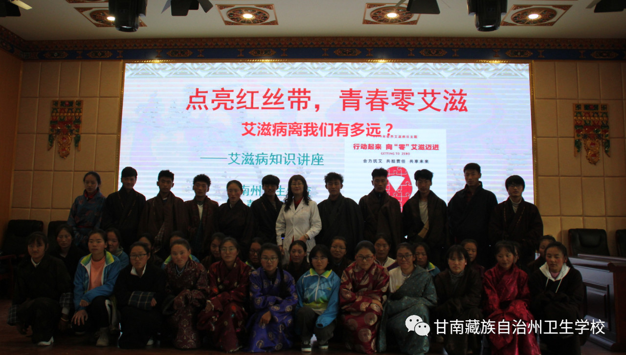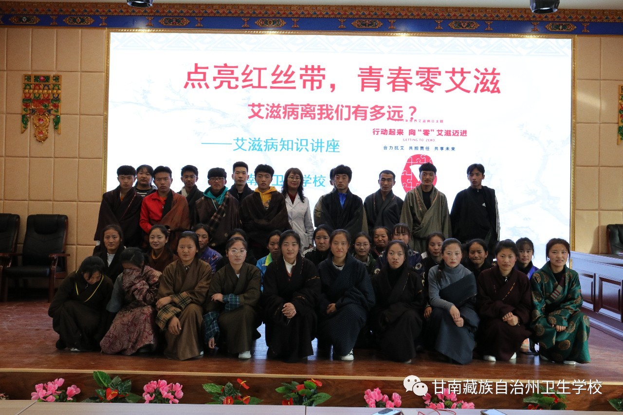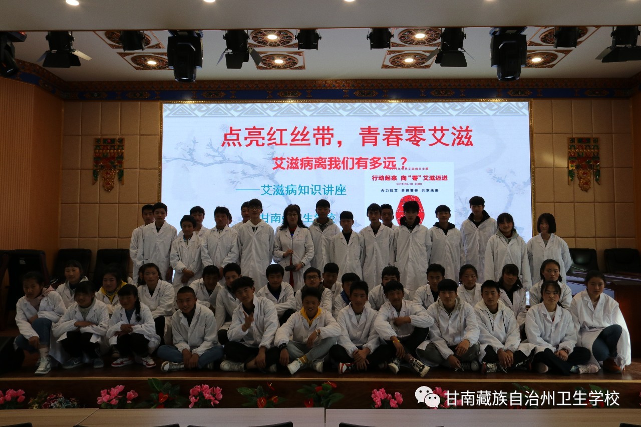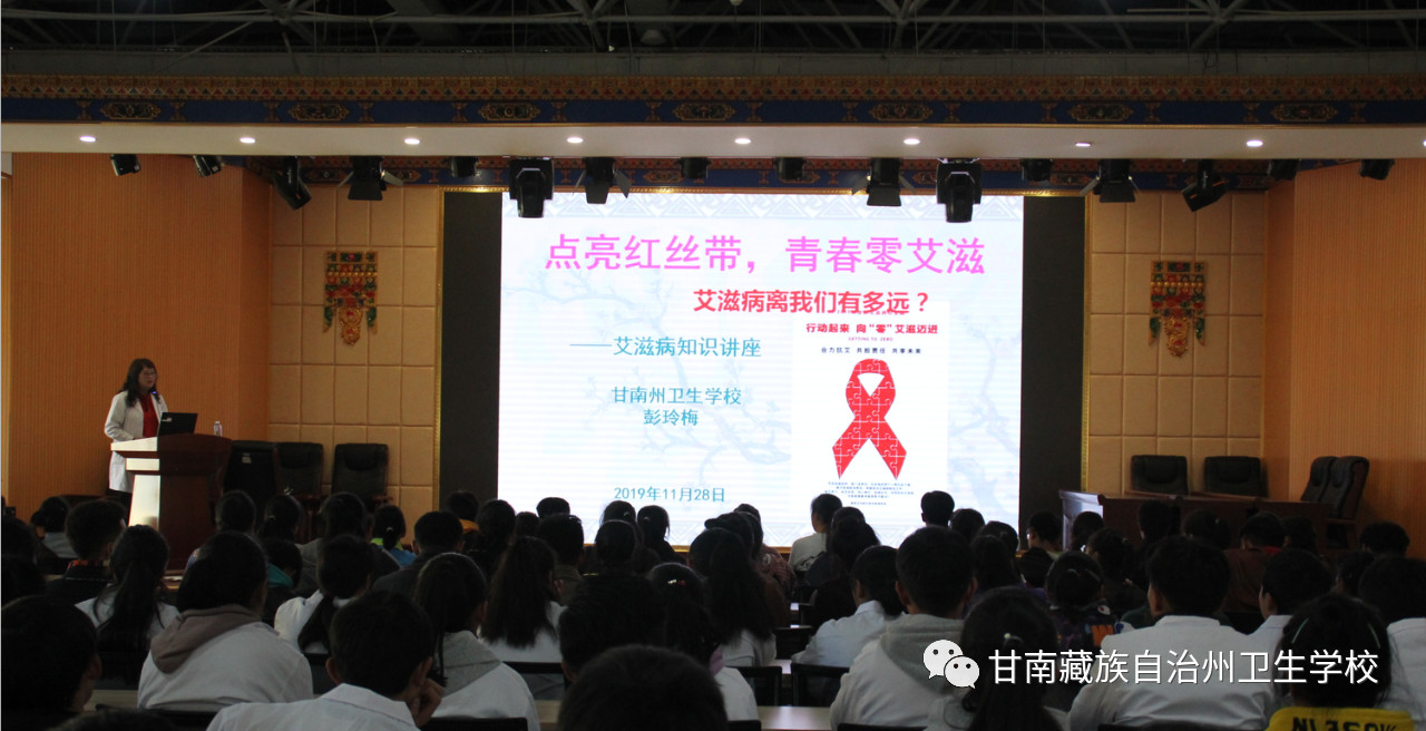 11月28日,院(校)附属门诊的副主任医师彭玲梅老师在校综合服务楼5楼多功能厅给2019级本科班、中专班的386名学生进行了"点亮红丝带,青春零艾滋"的艾滋病专题防控知识讲座。