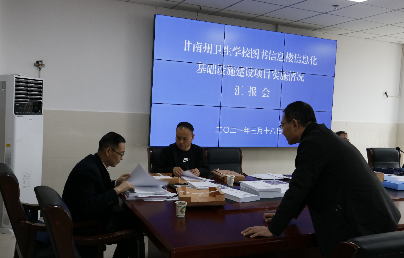 在本次督查过程中,督查组详细查看和调研了甘南州卫生学校图书楼信息化基础建设项目实施情况,学校组织了专题汇报会,在会上万睿斌副主任就此次督查的目的意义做了说明,赵兵书记就我校图书楼信息化基础设施建设项目的概况以及立项、招标、开工进展、资金落实情况进行了细致的汇报,黎昱民副校长就学校2号教学楼建设项目进展情况及学校“十四五”规划项目情况进行了汇报。