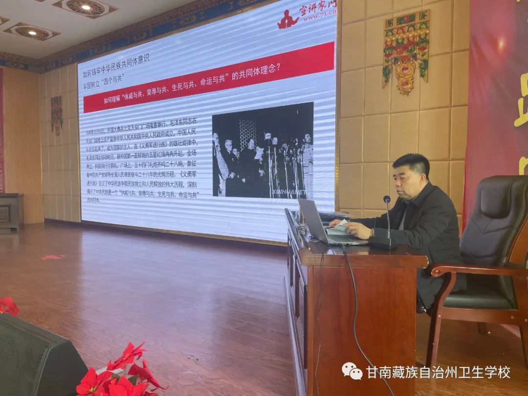 为进一步将正在开展的“三抓三促”行动推向深入,与“大思政课”建设工作有机融合起来,学校主动延伸“问题要解决,我该干什么”主题,创新大学生“形势与政策”教育活动,持续推动党的二十大精神深入人心,让立德树人根本要求落地生根,见行见效,3月17日,党总支书记赵兵同志以《民族团结:铸牢中华民族共同体意识》为主题,为全校420余名大学生开讲本学期第一堂“形势政策”课。