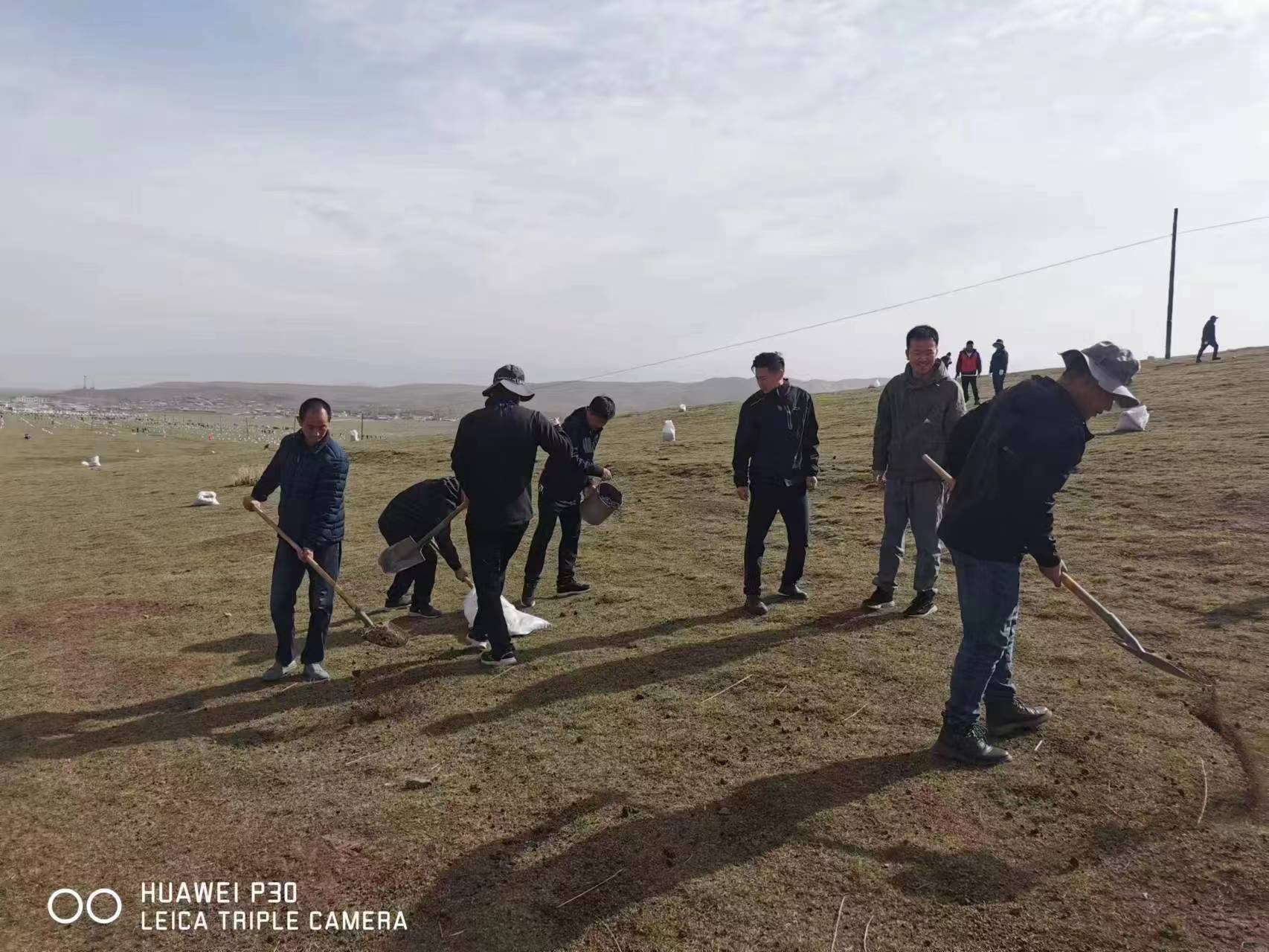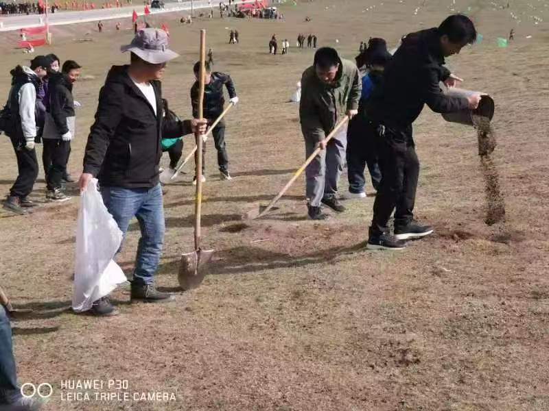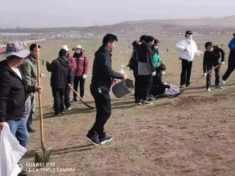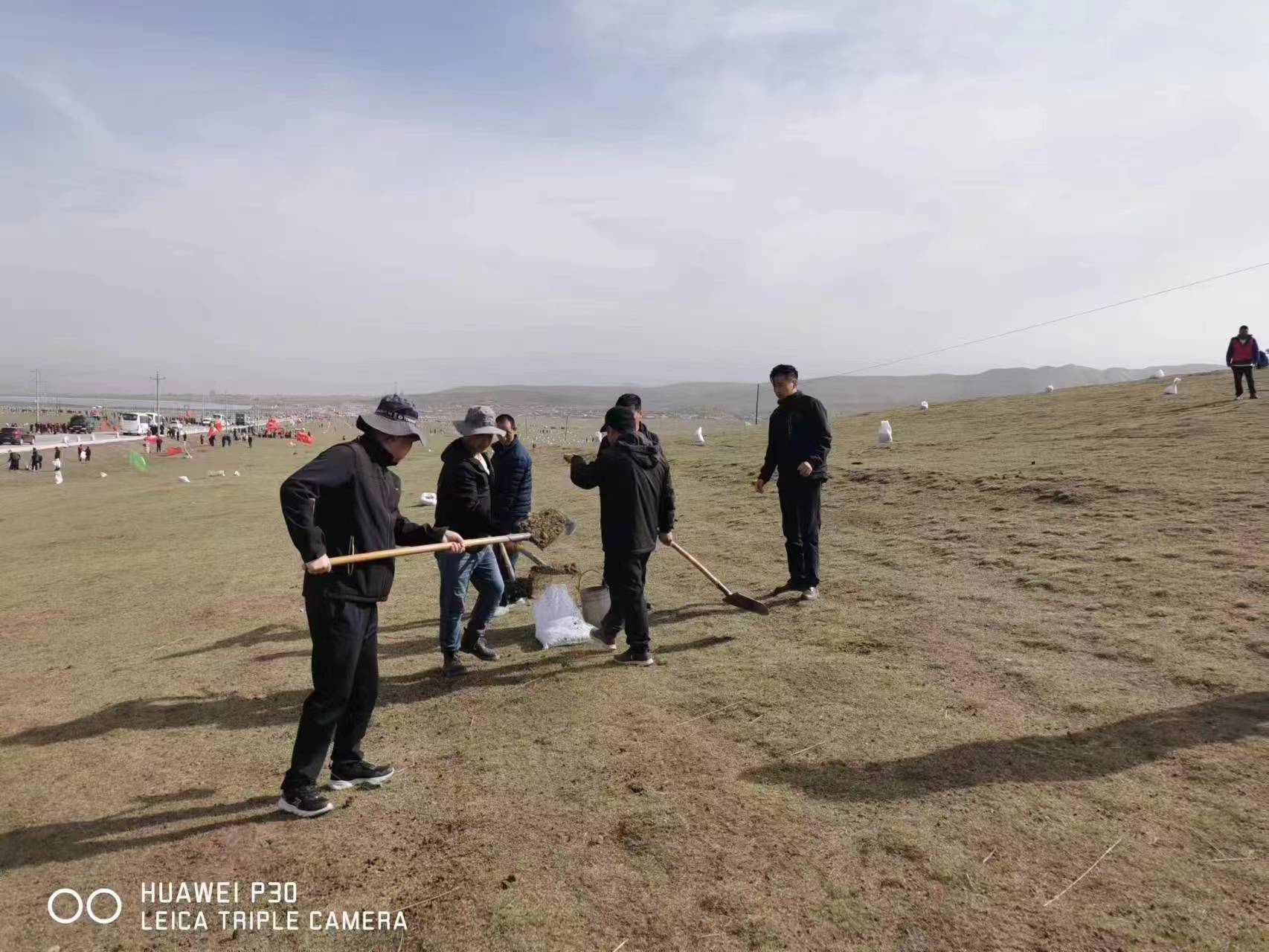 在夏河县甘加镇主题实践活动现场,呈现出一派热火朝天的繁忙景象,职工鼓足干劲、齐心协力、不怕吃苦,拿起铁锹铲土平地、播撒草籽、培实土壤,用积极饱满的热情投入到“山水林田湖草沙大治理生态环境大优化”主题实践活动中。
