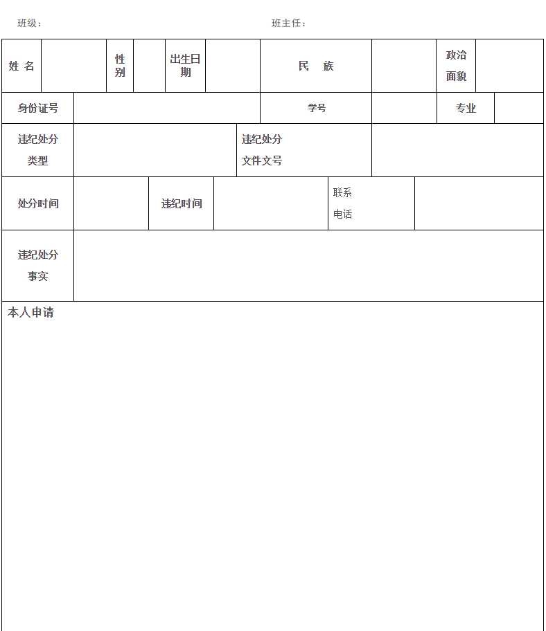 注: 1、被处分学生需在所受处分满一年后,由本人提出处分撤销申请。